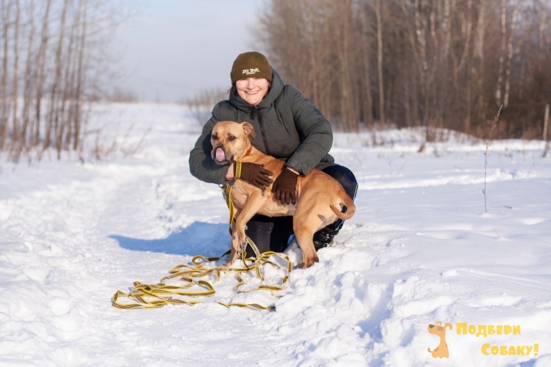 прекрасно реагирует на проводника. Очень любит ласку. Побегает, побегает, а потом летит за дозой любви и ласки! Прям прижимается всем тельцем полежать на материнской широкой груди, чтобы её погладили!))))