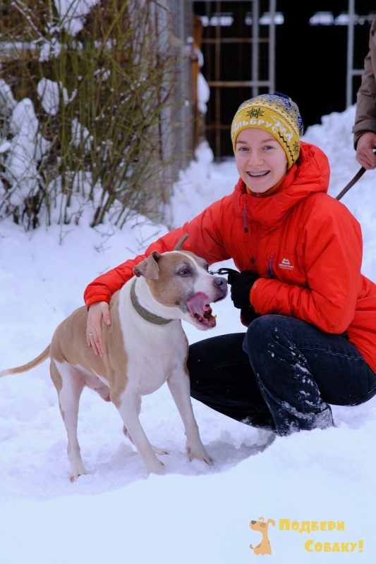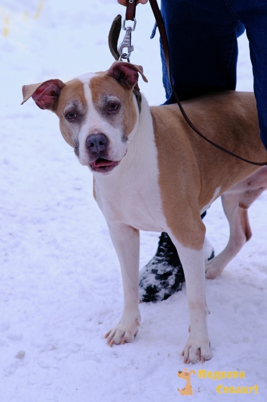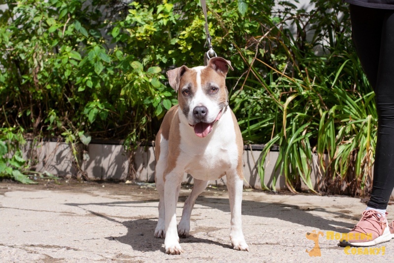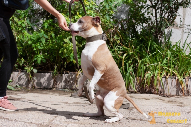 Баксик некрупный, очаровательный стаффик, немного робкий при первом общении.