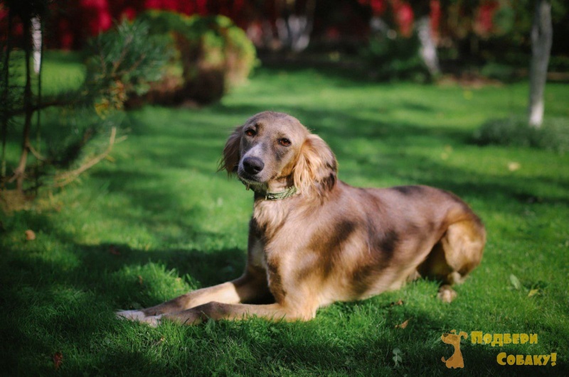 Ясмин, 2 года. Порода — тазы, грациозная ленивица с восточным темпераментом. Стерильна, привита, здорова. Ясмин — идеальный выбор для тех, кто ищет мягкую, ненавязчивую, но очень преданную собаку. Спокойная, ласковая, человекоориентированная. Любит уют, тишину и смотреть на мир с дивана, положив голову на ваши колени. Территориально — г. Чехов. Татьяна. Звоните!