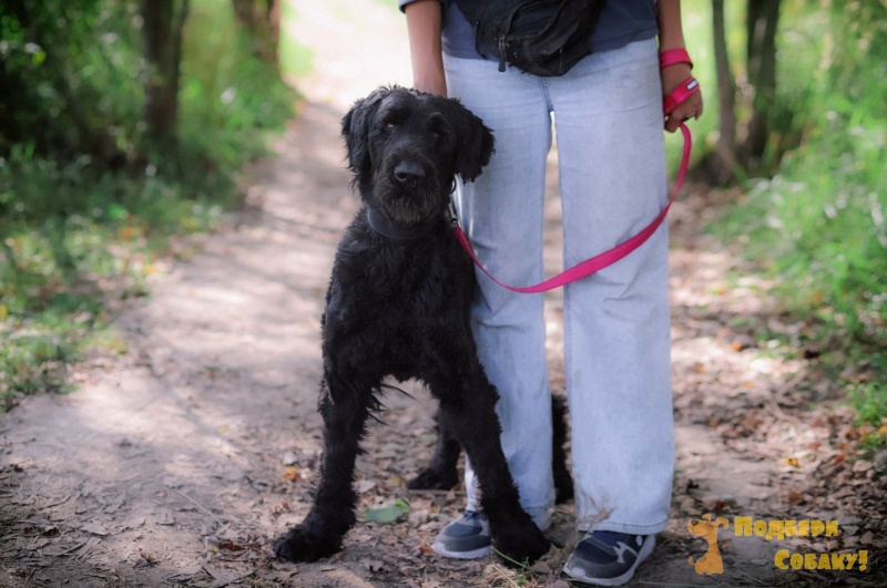 Это пока в странном образе, но все-таки русский черный терьер Жюль. Даже когда забритый и худой, видно, что обаяшка, а представьте, каким красавцем станет, когда обрастет и округлится.