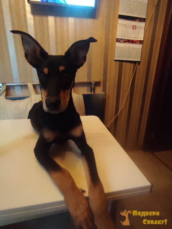 Отдам собаку в добрые руки. Порода доберман с кем то другим. Вырос большой, и не такой какой ожидали для квартиры. Обучаем. Сами не можем начать обучать из за обстоятельств. Щенку 10 месяцев. С другими людьми ладит, с детьми неизвестно.