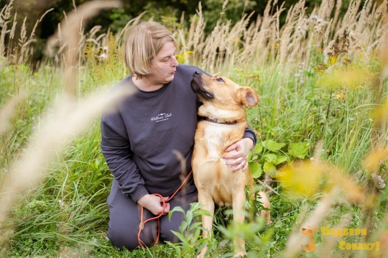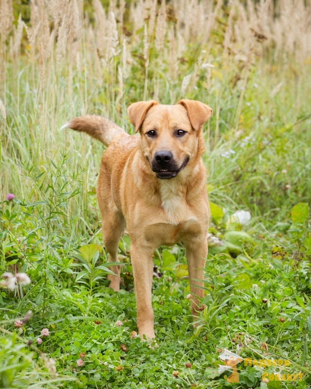 Молодой, спокойный, ласковый, очень человекоориентированный парень с интересной внешностью. Компактный, похож на небольшого лабрадора. Прекрасно ходит на поводке, причем научился этому с первых же прогулок, слушает человека, легко обучается. С другими животными миролюбив, может быть второй собакой. Любит, когда его гладят и угощают вкусняшками. Настоящая собака-компаньон.