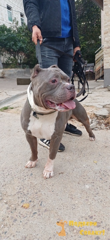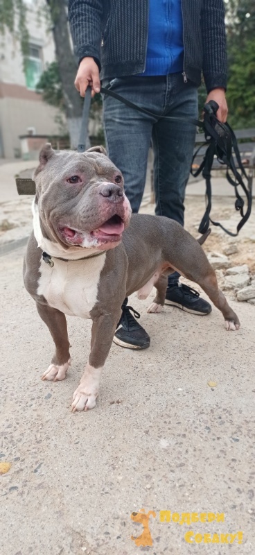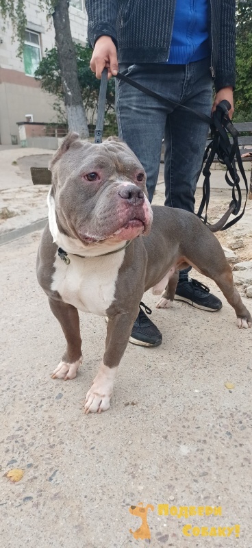 В приют приехал вот такой солидный булли голубого окраса, возраст 5,5 лет. Отказник (не смог подружиться с другими животными в доме).