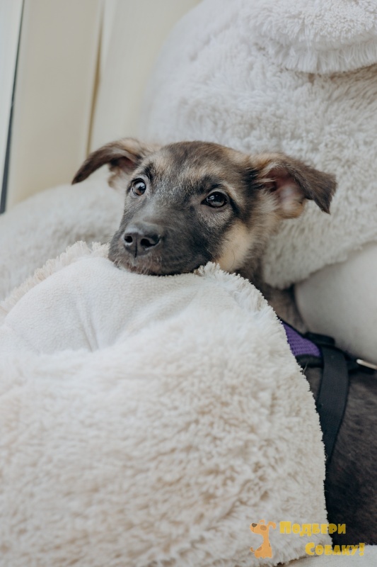Это не щенок, а настоящее воплощение нежности. Девочка Гуля - робкий ангел, который не будет шалить и прыгать, а тихонечко сядет рядышком и будет преданно смотреть вам в глаза.