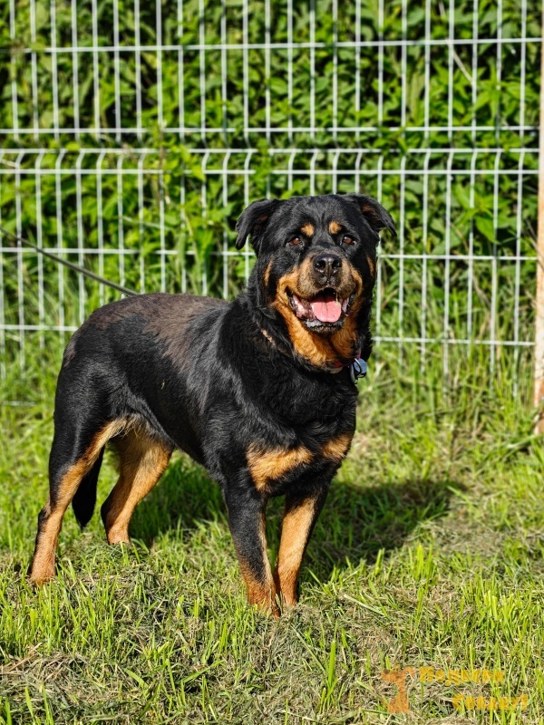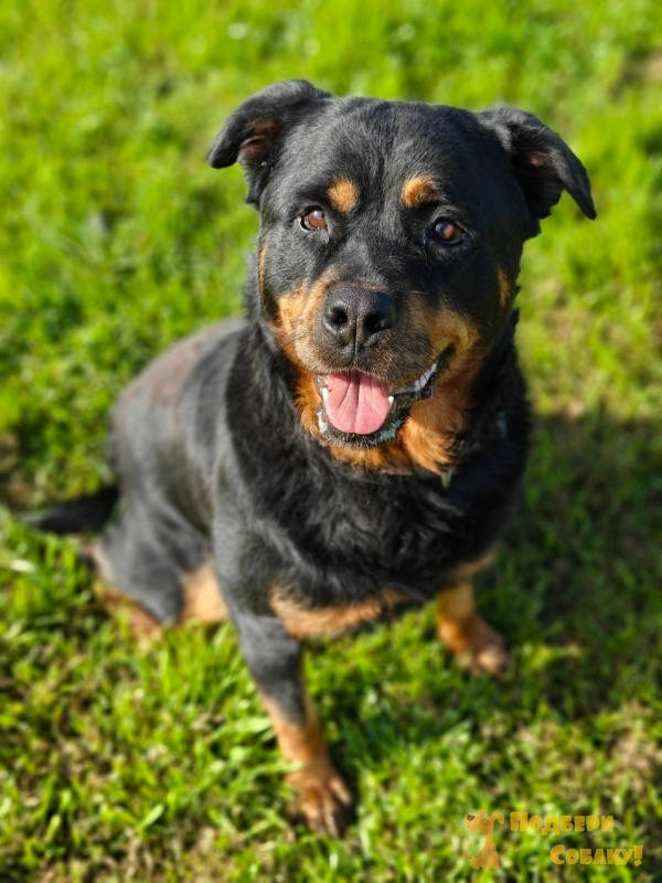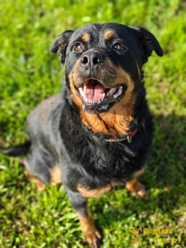 Наша роттомедведя здорова и весела. Ищем свой дом для молодой, самодостаточной девицы, которая мечтает жить в частном секторе, возможно вольерное содержание с регулярным выгулом. Отношение к детям и мелким животным неизвестно. Предпочтение мужчинам/взрослой семейное паре с опытом содержания собак служебных пород