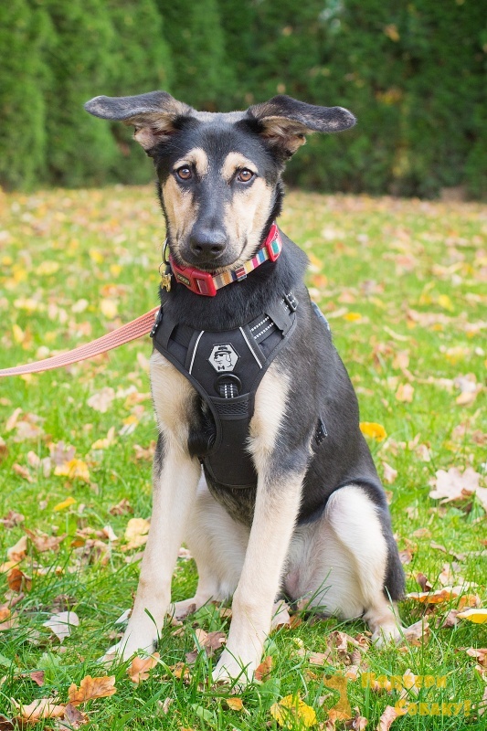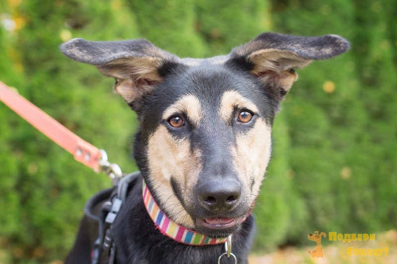Муха — радостная, веселая собака. Щенок еще, месяцев 9. Но глаза умные, даже мудрые не по-детски... Тоска в них совершенно взрослая, вглядитесь...