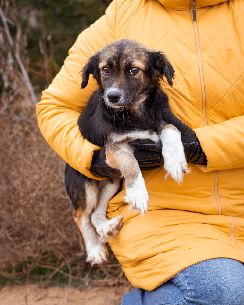 Маленькая, скромная девочка. Она очень привязывается к человеку, ходит хвостиком, просится на ручки. Добрая и нежная, достаточно спокойная для своего ещё совсем юного возраста. Муха скромничает и стесняет незнакомых людей, но абсолютно без агрессии. Скорее всего, девочки потребуется немного времени в новом доме, чтобы привыкнуть ко всему. Муха прекрасно ладит с другими собаками и кошками. Живёт в приюте на улице.