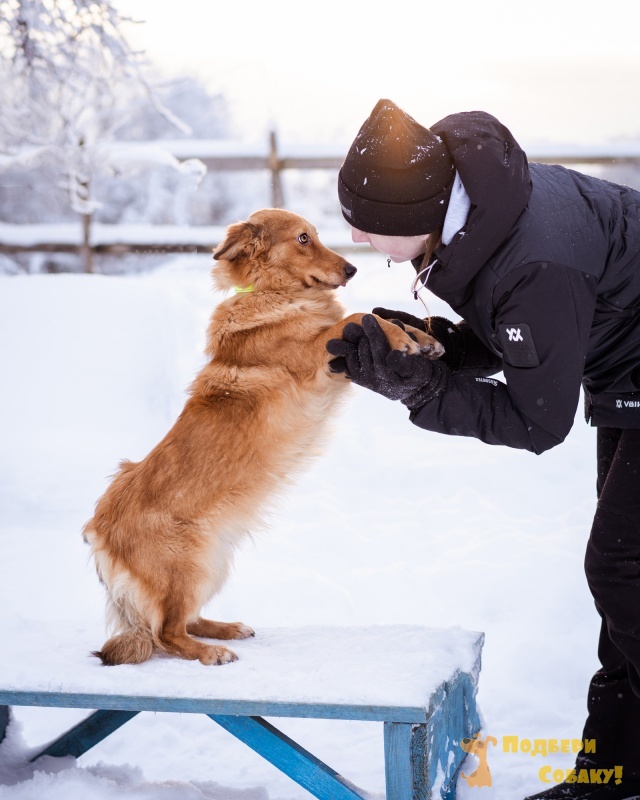 Он с радостью бежит навстречу любому посетителю приюта, встаёт передними лапками и просит его погладить)