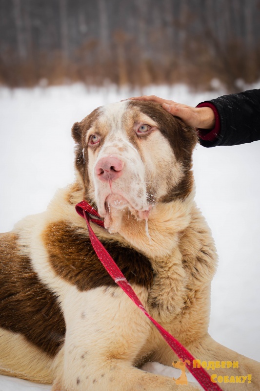 Кратос - огромный ласковый парень с необычным окрасом. Такие собаки встречаются 1 на 1000. Отлично ладит со всеми, играет с удовольствием. Добрый, совсем не агрессивный. Его пугает все новое и адский дай в вольерах приюта. Его счастье - семья с хорошим участком и люди, которые будут любить