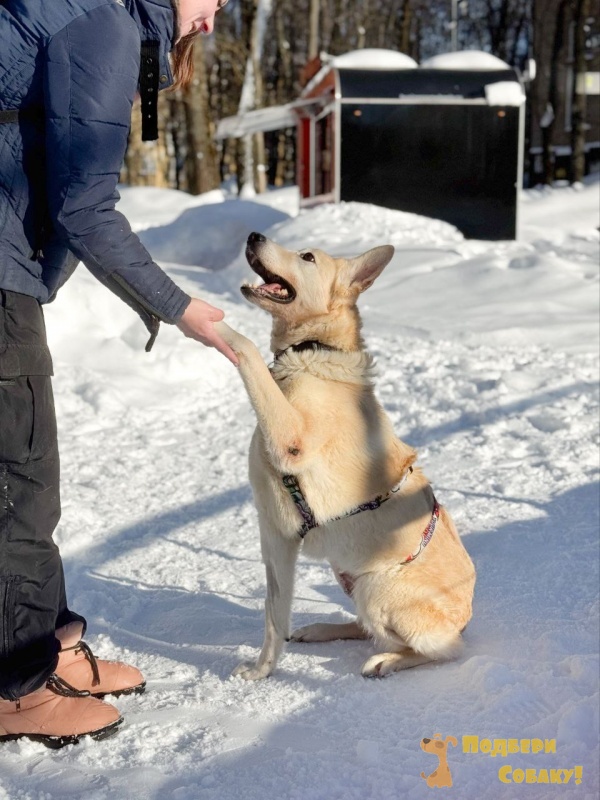 Мы назвали это чудо собаку Ханна . Она была найдена с травмой лапы в поле за г Лосино Петровский. Это абсолютно домашняя собака!!! Социализирована , умеет ладить с кошками и собаками, отлично ездит на машине - сама в нее идет и даже на автобусе. Ласковая и контактная . Старые хозяева не найдены. Сейчас собака проходит лечение и находится на квартирной передержке . Она молодая и ооочень активная - на улице она вся в движении , готова бежать и прыгать ( если бы не травма лапы - которая скоро заживет ) . СУпер ласковая !!!! Привита и скоро будет стерильна. Дома не вандалит, к выгулу приучена . Не собака , а мечта!!! Приезжайте знакомиться