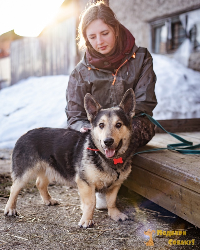 Смешной коротколапый мальчишка с телом корги и головой овчарки)