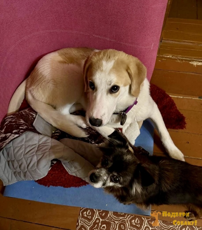 Юта живет на передержке в квартире в Москве вместе с другой собакой, поэтому ее точно можно брать в семью еще одним животным. Кошек она любит и никогда не обидит.