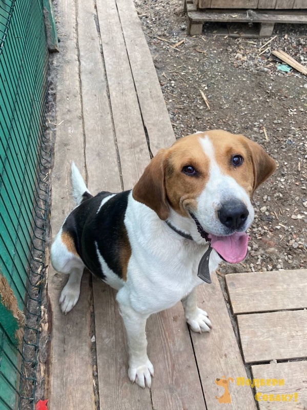 В приюте Иосиф немного тревожный: может погудеть на незнакомых людей и собак, но на самом деле он скорее робкий и осторожный мальчик.